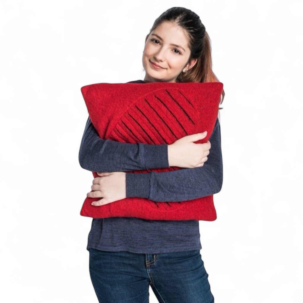 Červený polštář se vzorem srdce, 45x45 cm, 100% vlna