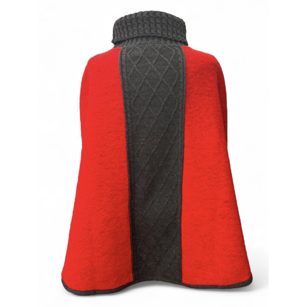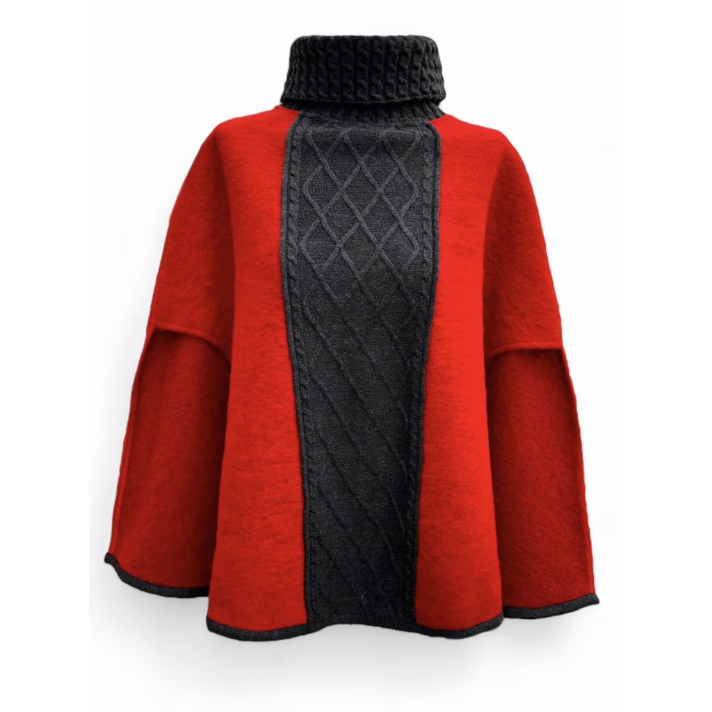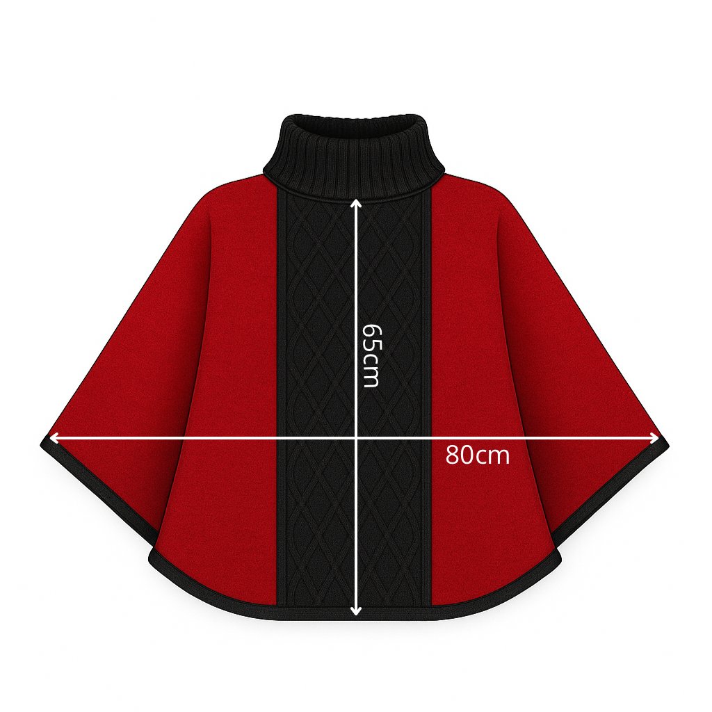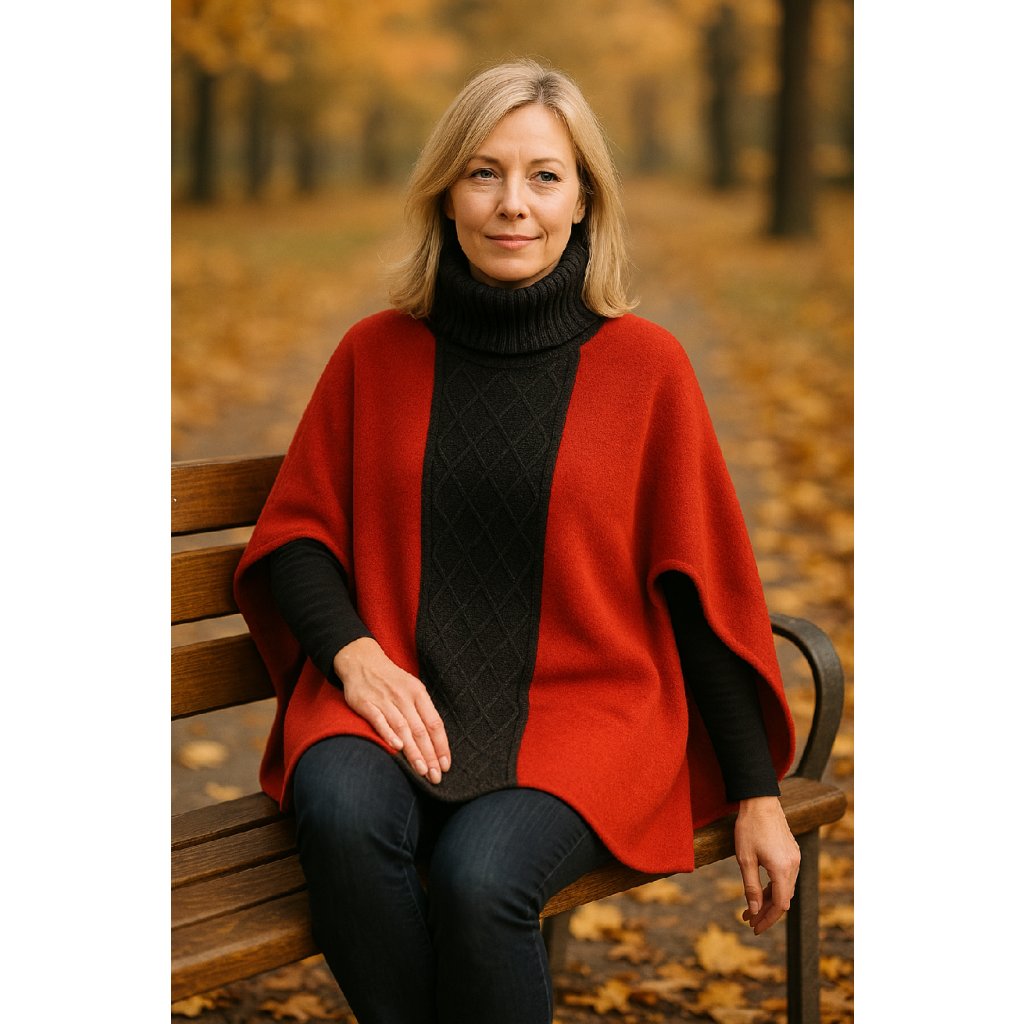 Dámské pončo Julia – červené s pleteným černým pruhem