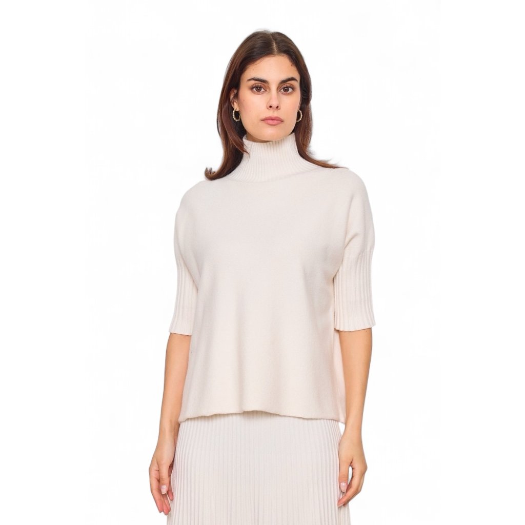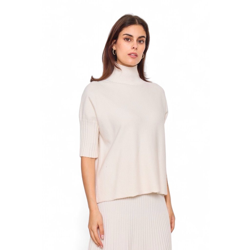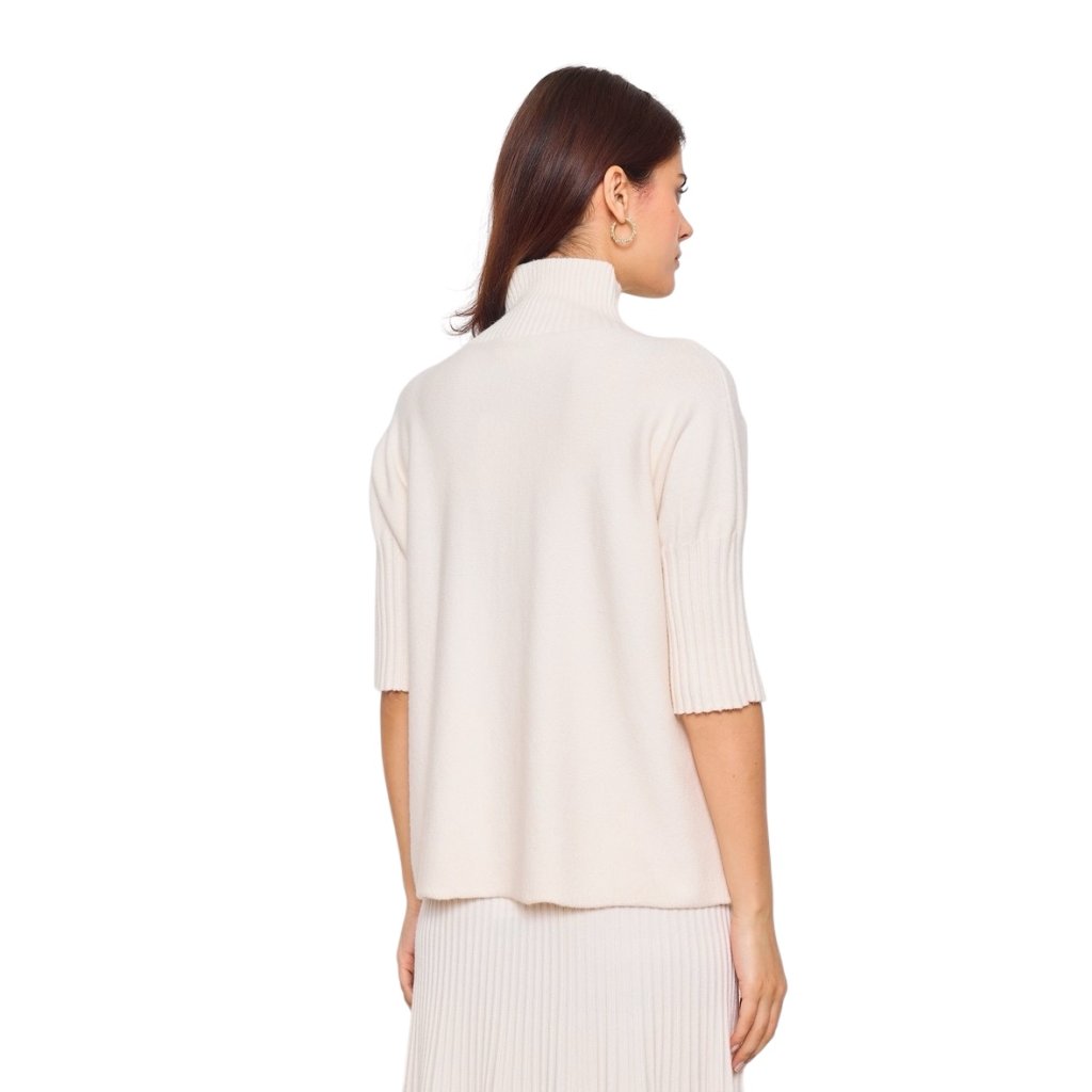 Svetr Alessia je stylový oversize rolák s kratším rukávem, který působí elegantně a zároveň pohodlně. Volnější střih a žebrované detaily na rukávech dodávají svetru moderní charakter, zatímco rolák zajistí příjemné teplo. Je ideálním kouskem pro vrstvení i samostatné nošení.