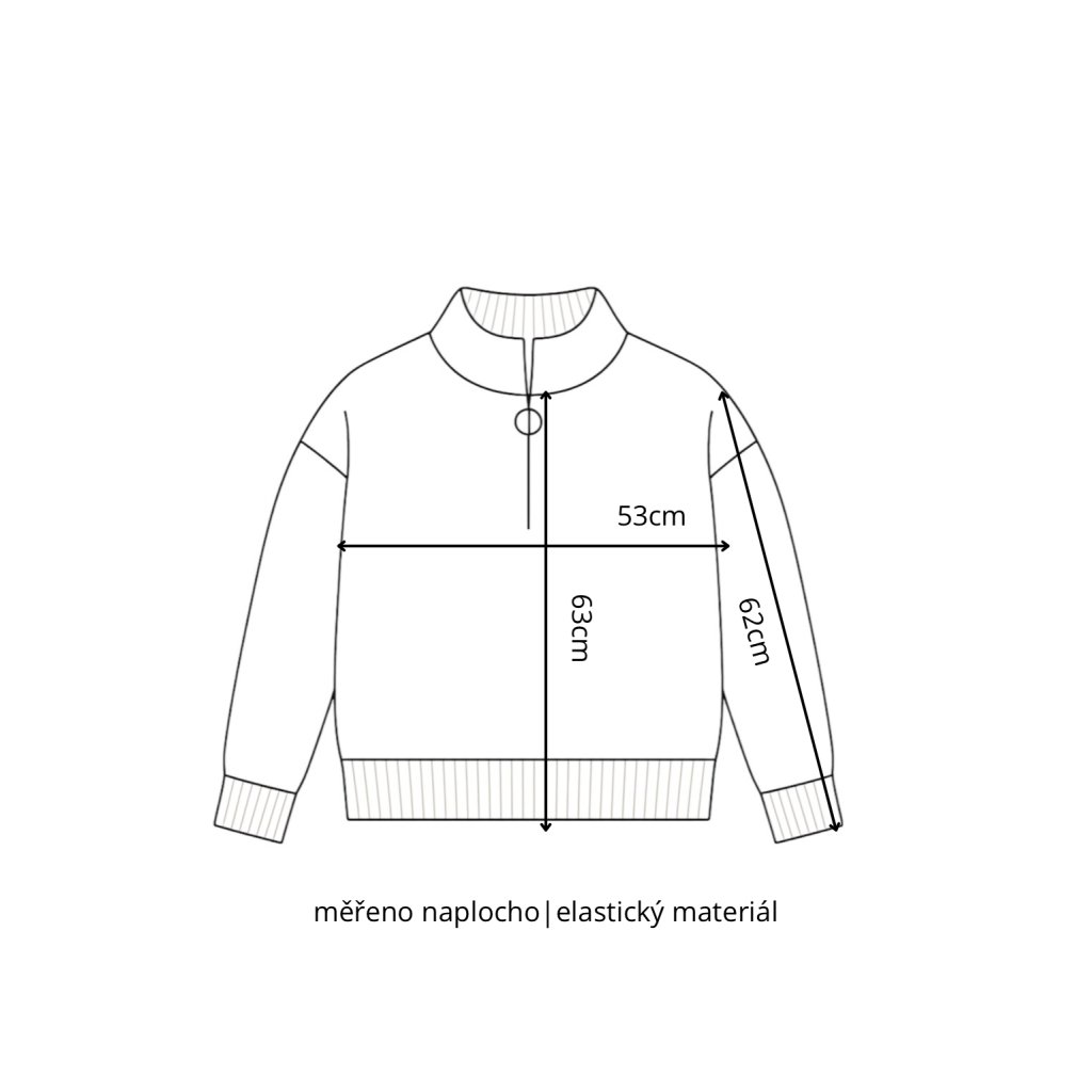 Rozměry: šířka 53 cm, délka 63 cm, délka rukávu 62 cm