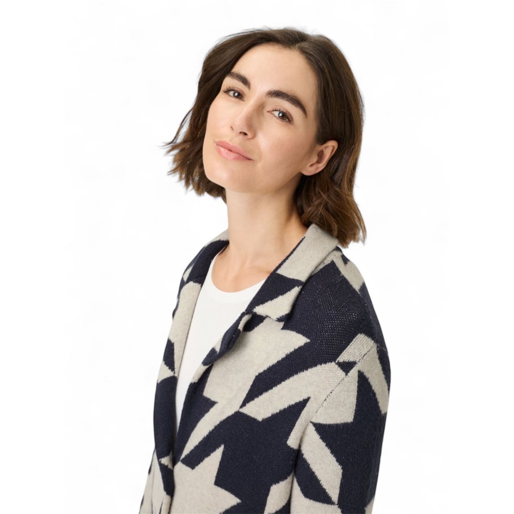 Kardigan Henny se skvěle hodí k úzkým džínám nebo látkovým kalhotám v neutrálních odstínech. Pro ležérní look ho kombinujte s bílým tričkem a kotníkovými botami, pro elegantní outfit pak s blůzkou, páskem a kozačkami na podpatku. Dokončete outfit jednoduchými doplňky, které nechají vyniknout klasický vzor kohoutí stopy.