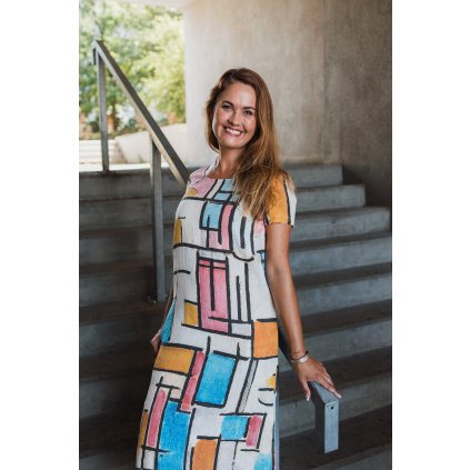 Barva a vzor: Bílá s uměleckým vzorem inspirovaným „Rozmarnost leta“.