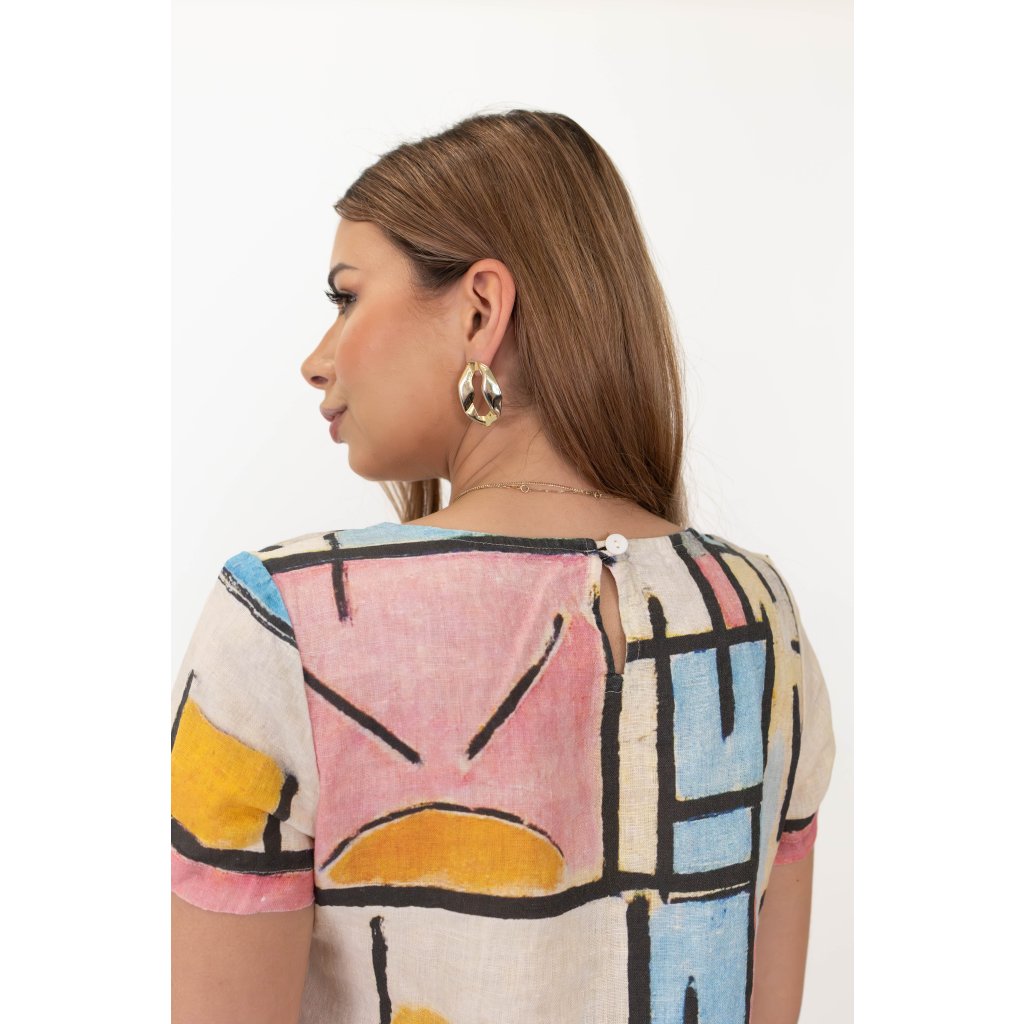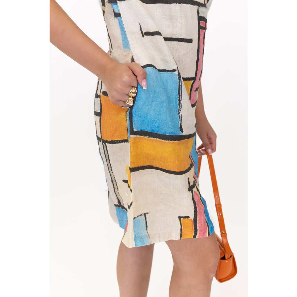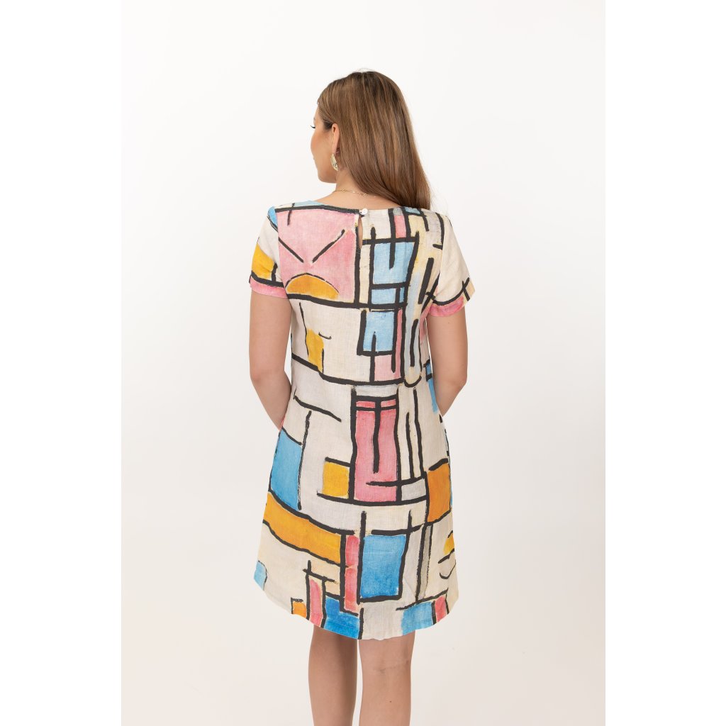 Šaty maxi 100% Len Piet Mondrian Kompozice v oválu s barevnými rovinami/Composition in Oval with Colour Planes Kr