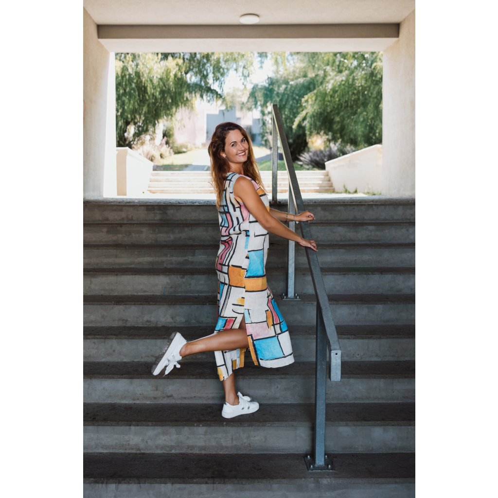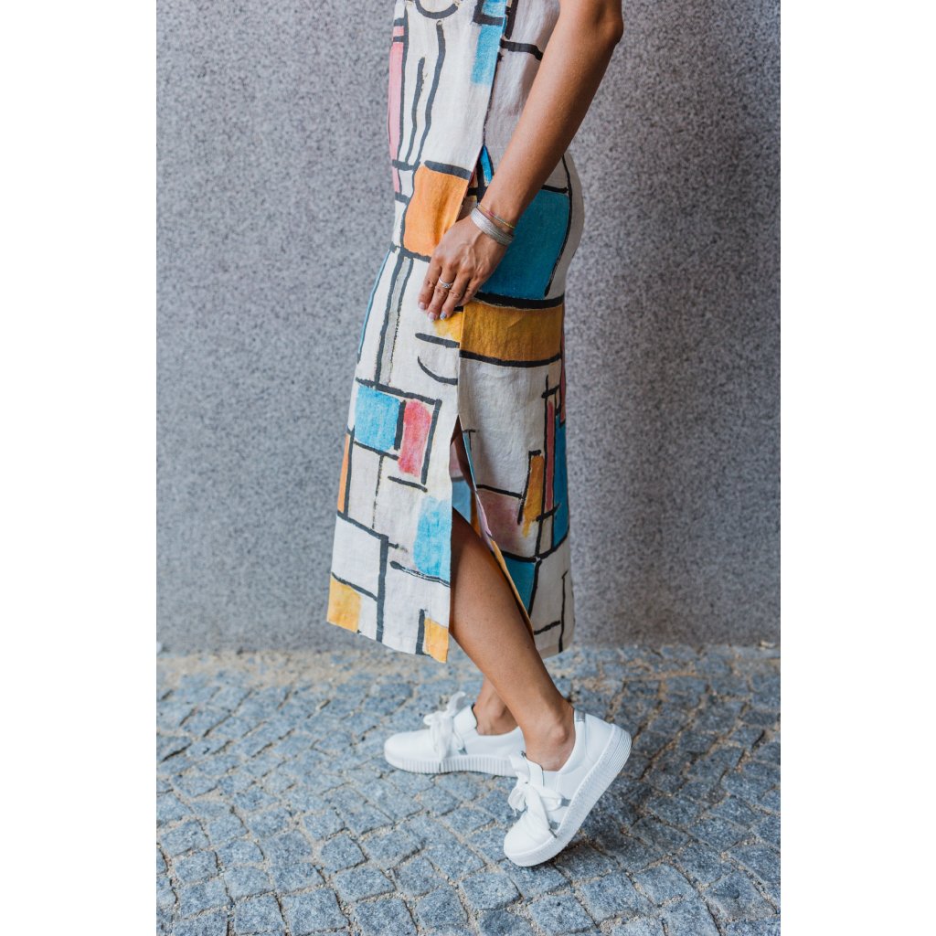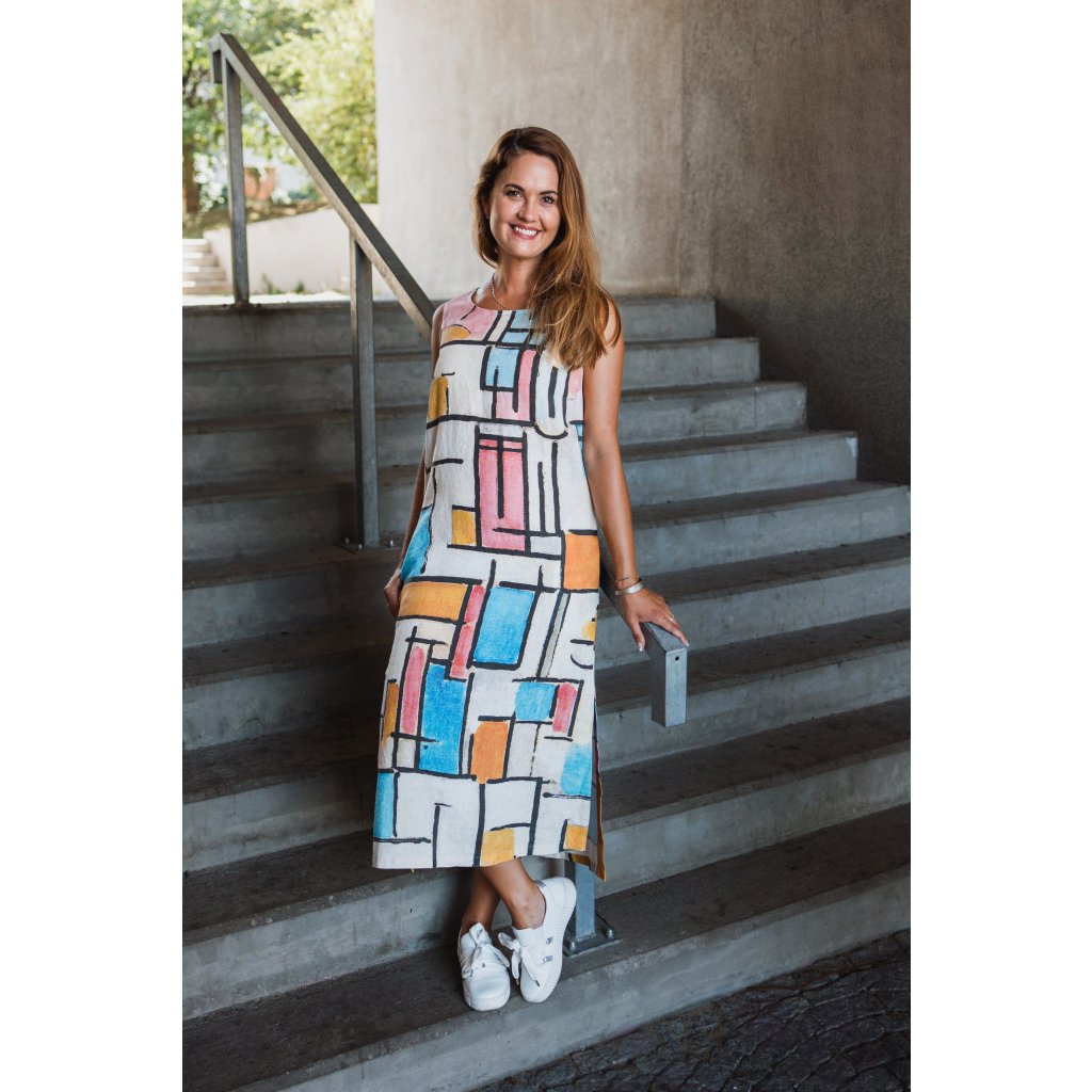 Šaty maxi 100% Len Piet Mondrian Kompozice v oválu s barevnými rovinami/Composition in Oval with Colour Planes Kr
