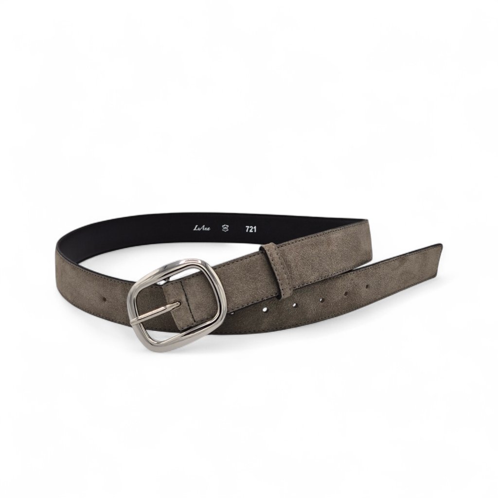 Šedobéžový dámský pásek Vivien je elegantním a nápaditým doplňkem, který osvěží váš outfit. Vyrobený z prvotřídní broušené (velurové) hovězí kůže, nabízí hebký, téměř sametový povrch. Lesklá stříbrná přezka v klasickém stylu dodává sofistikovaný a moderní vzhled, který krásně ladí s kovovými detaily na kabelkách, špercích či obuvi. Se šířkou 3 cm a délkou 100 cm je pásek nejen univerzální–výborně padne do kalhotových poutek, ale také elegantně zdůrazní pas při nošení přes šaty, sako nebo kardigan. Precizně zpracovaný ručně v EU, každý pásek splňuje nejvyšší standard kvality a dlouhodobé životnosti. Díky pravé přírodní kůži získává s časem jedinečnou patinu, která podtrhne váš osobní styl a přidá outfitu sofistikovaný nádech.
