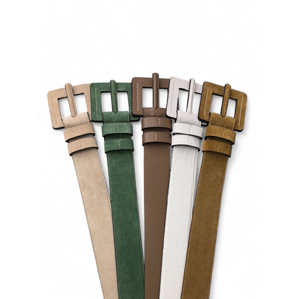 Šedohnědý kožený pásek Forma v hladkém provedení – symbol jednoduché elegance. Jeho přírodní barva působí teple a snadno se kombinuje se světlými i tmavšími outfity. Vhodný pro ženy, které dávají přednost klasice s jemným moderním nádechem.
